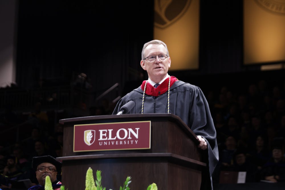 Durham said he spent time with Elon seniors while on campus over the last few days and shared some quotes from the students he met. He also said that once graduates cross the stage and become alumni, they will all be a part of the same Elon community.