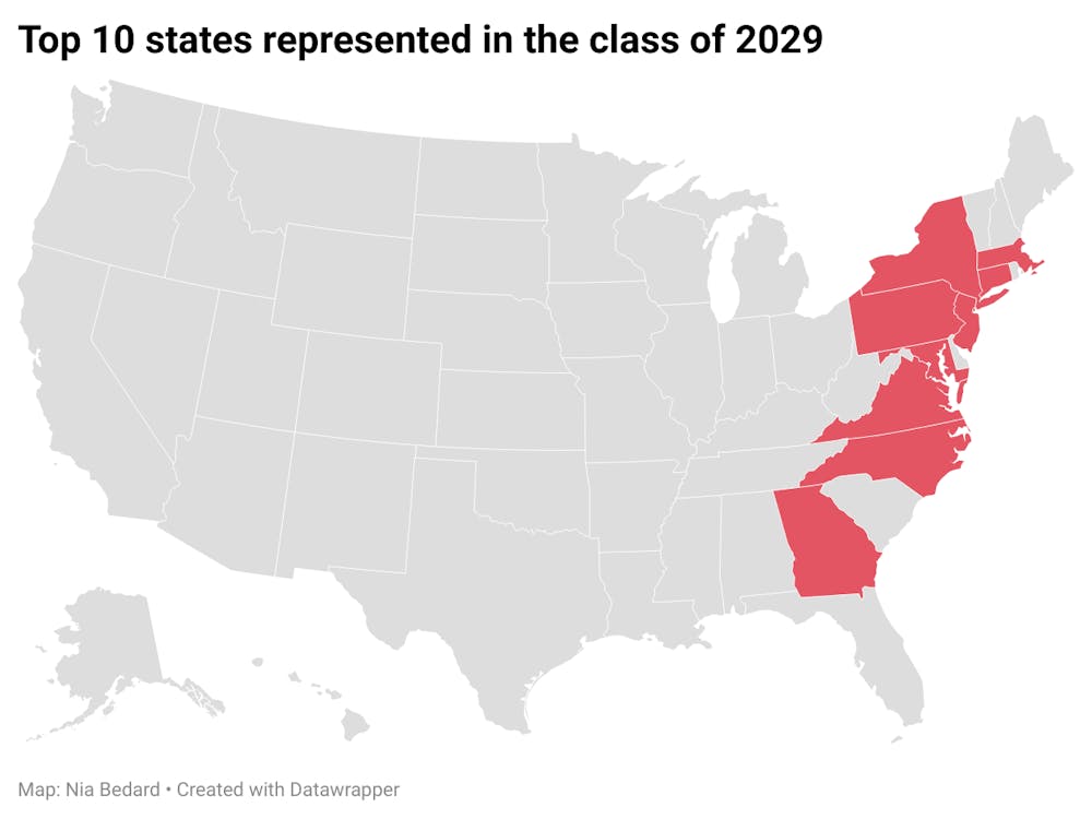 According to Zaiser, the 10 most represented states in the class of 2029 were all from the east coast, with six of the 10 being the most represented states in the class of 2028.