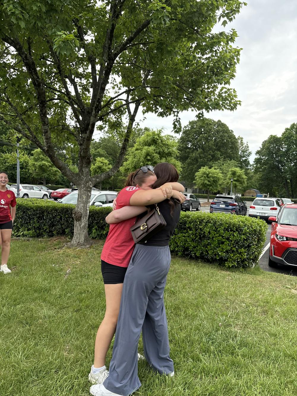 Lexi Rogers hugs her friend while visiting campus for a wiffle ball tournament organized by some of the Greek life organizations. The tournament was hosted in the spring semester to raise money for Blood Cancer United. Courtesy of Lexi Rogers.