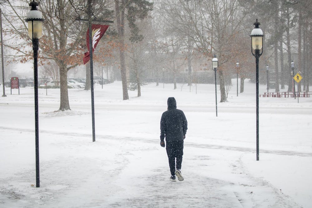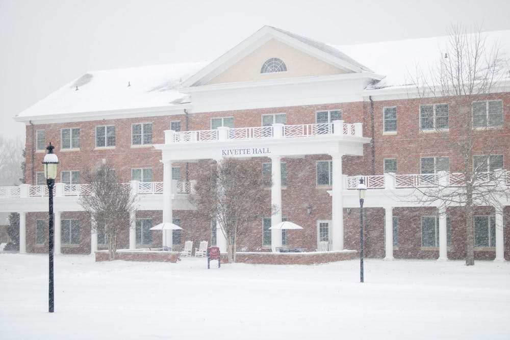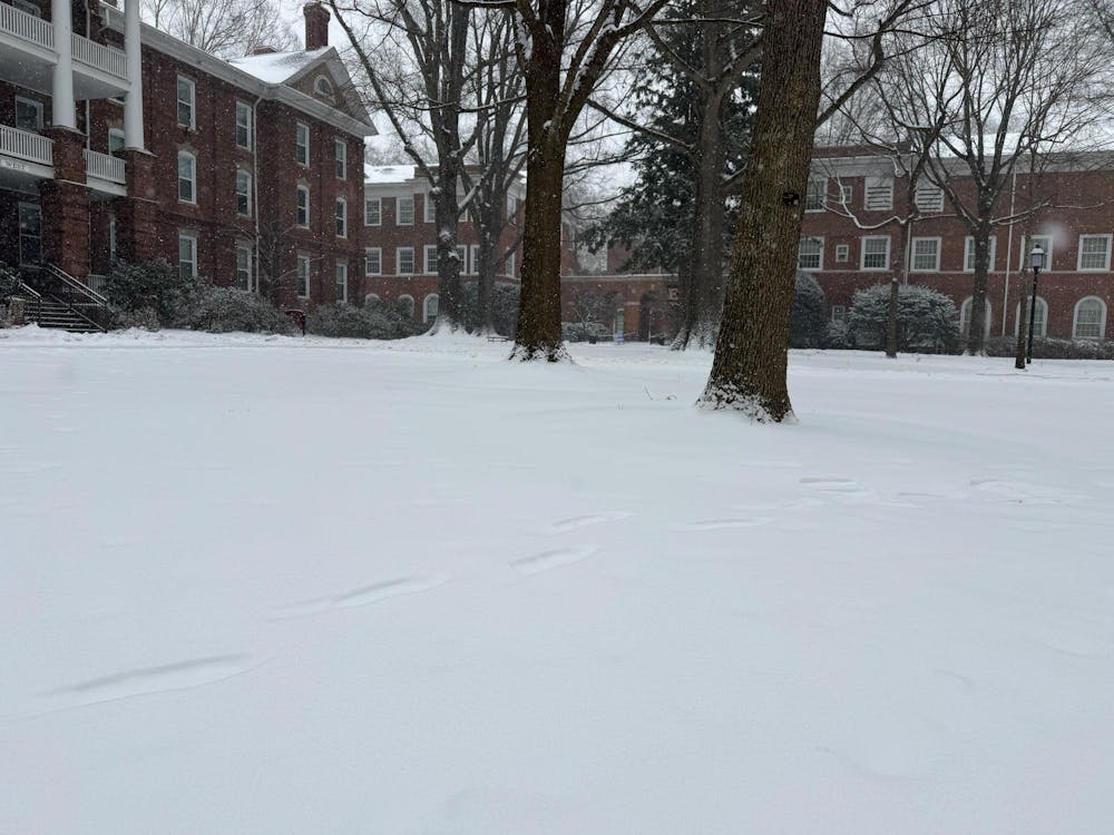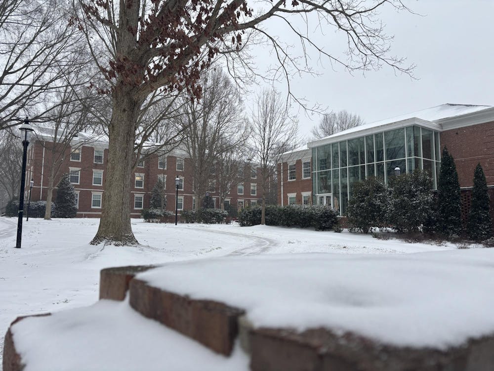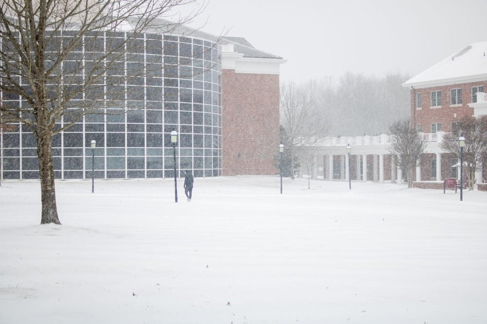 After closing university offices Jan. 30 in preparation for anticipated snow, Elon University's campus was covered with snow Jan. 31.