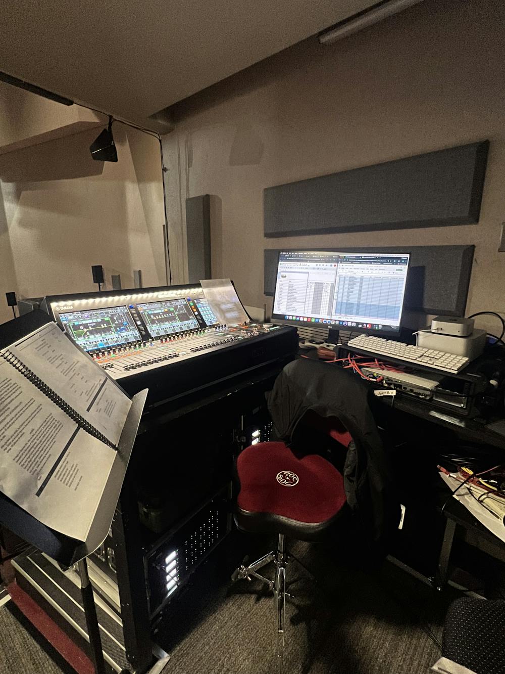 During rehearsals and while testing the sound design, Cericola said he would run between that seat and his audio booth in the back of the theater, making changes to the audio each time. He said the process was filled with trial and error, and after each rehearsal, he took notes about what went well and what needed to change.