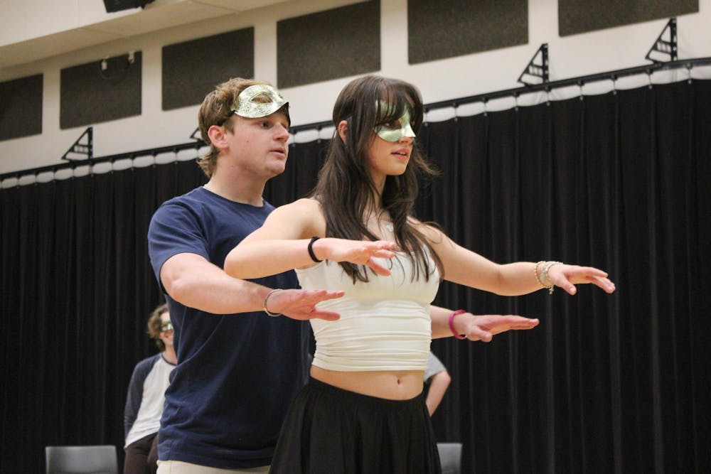 Senior Sam Olt, who plays Romeo, rehearses a moment from "Romeo and Juliet" on March 31 in Scott Studios.