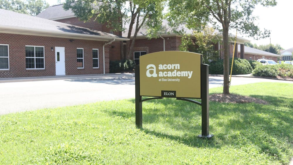 The new Acorn Academy sign stands in front of the building on South Campus, which previously housed the psychology and human service studies majors, on Aug. 18.