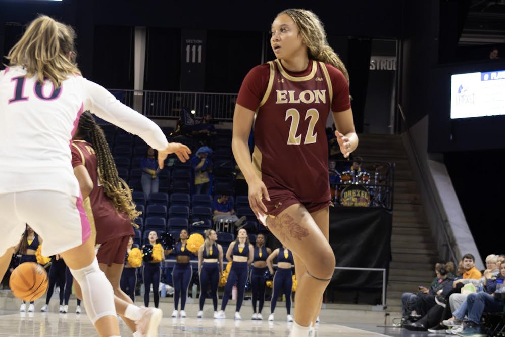 Redshirt Junior Tyana Walker looks for an opening in Elon Women's Basketball's CAA quarterfinal game against Drexel University.