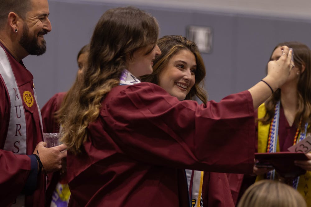 Graduating Seniors take selfie together before the commencement ceremony at the Elon University 135th Undergraduate Commencement May 23 at Schar Center.
