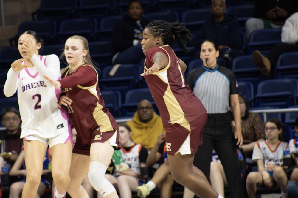 Freshman Ashanti Fox blocks a pass in Elon's quarterfinal game against Drexel University.