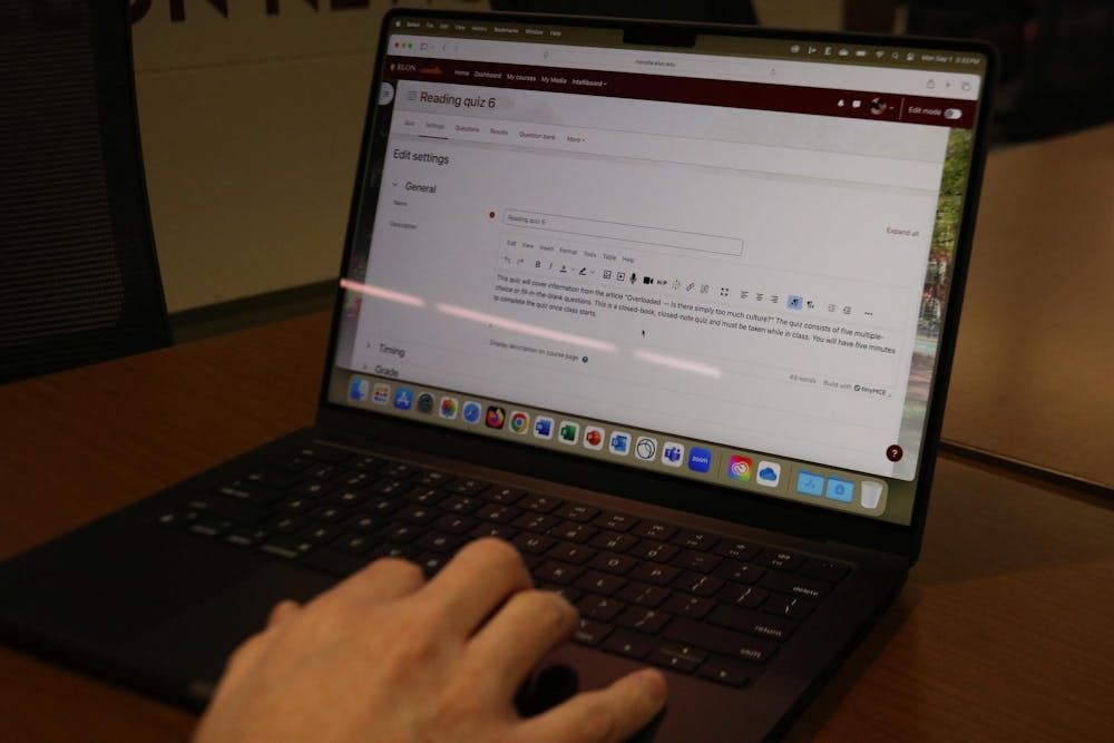 Elon professor Kelly Furnas uses the improved text editor in Moodle to prepare a quiz.