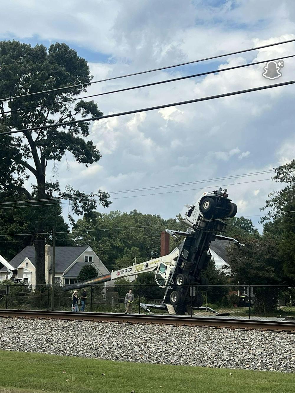 A tree removal crane tips blocking West Lebanon Avenue on Sept. 4. | Credit Julia Panell