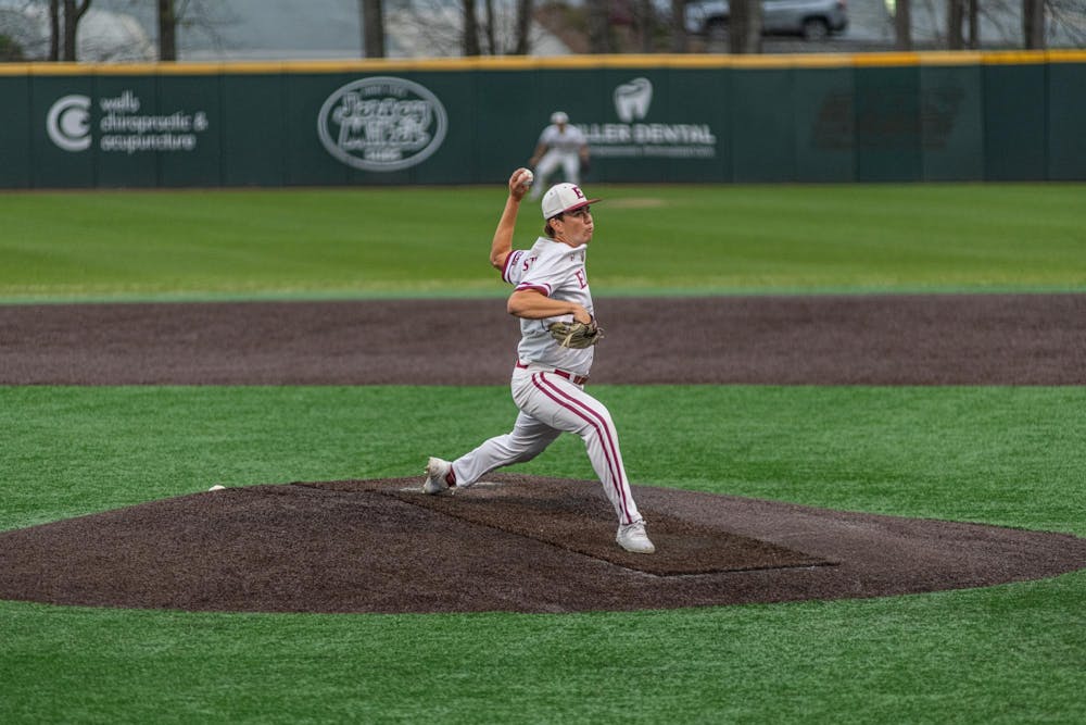 Sophomore Mike Staiano pitches during Elon's 10-0 loss against Wake Forest on March 25. Staiano earned the loss, letting up 3 hits and 2 runs.