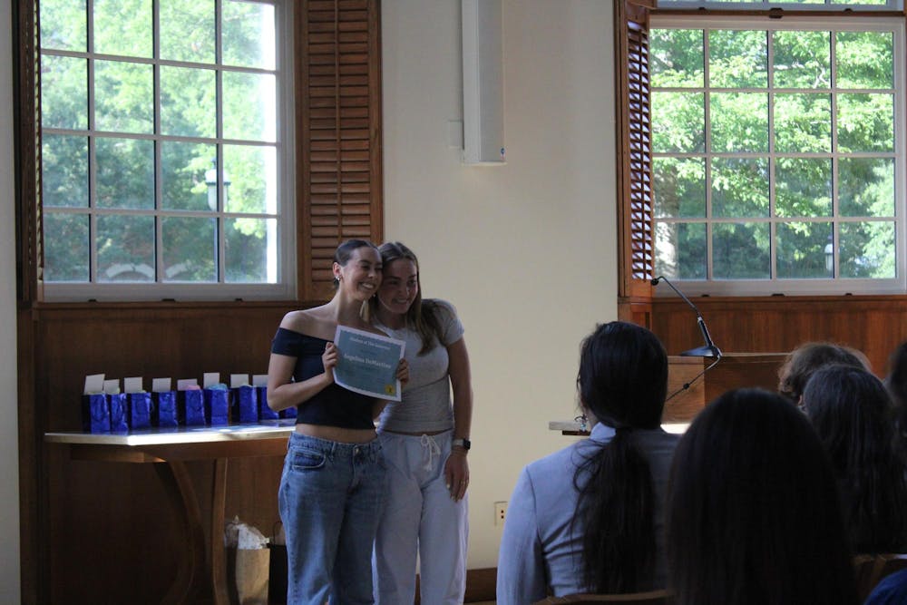 Junior Angelina DeMartino is awarded a 'Student of the Semester' award at the Human Donor Memorial held on May 9 in the Numen Lumen Sacred Space.