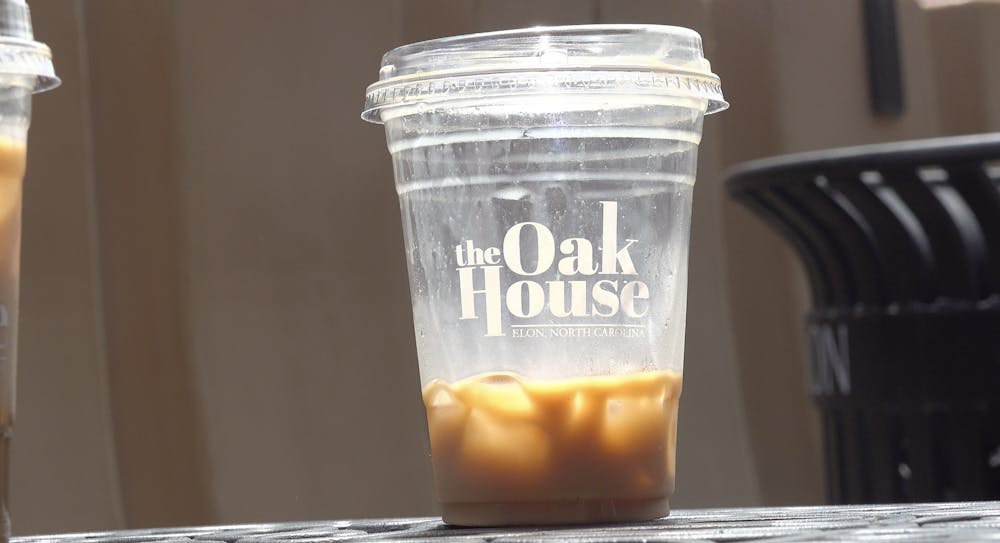 A hazelnut iced latte with oat milk from The Oak House in downtown Elon has received a high rating from TikTok coffee creator, Ryan Keane, known as “Ryan’s Coffee.”