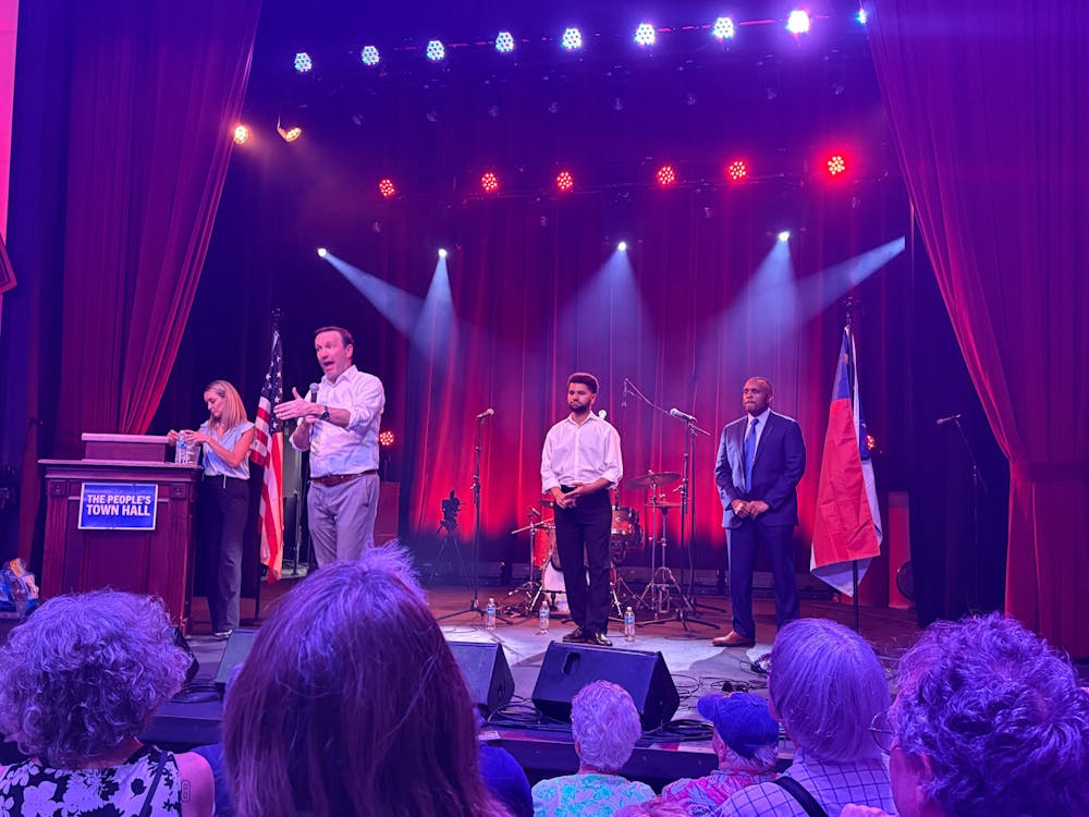 U.S. Sen. Chris Murphy answers questions at The People’s Town Hall held at Haw River Ballroom on April 24.
