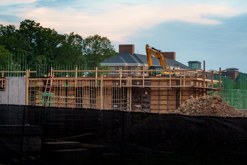 Ongoing construction of HealthEU has blocked off parts of a parking lot on July 18 at Innovation Quad. The original asphalt of the parking lot across from East Neighborhood has been removed at this phase of construction.
