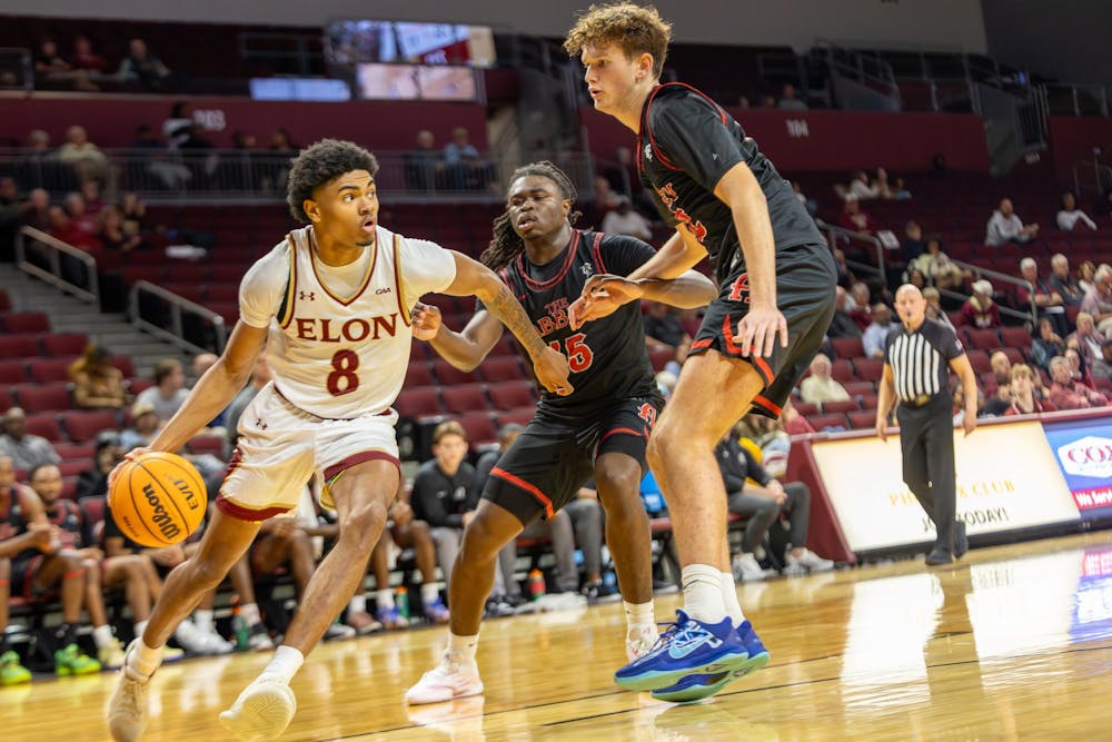 Freshman DeMarco Johnson dribbles the ball during a game against Belmont Abbey on Nov. 5.
