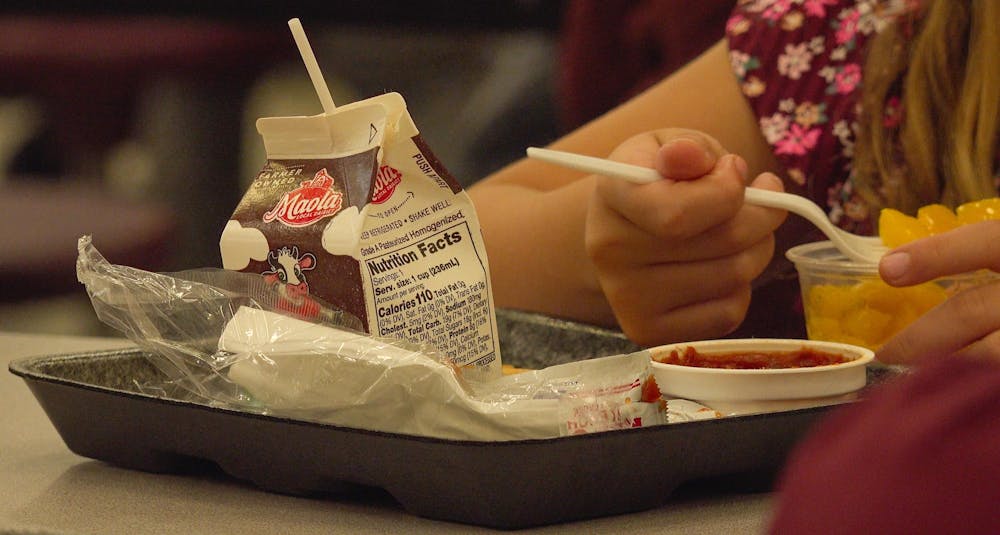 A Harvey R. Newlin Elementary School student eats a fruit cup Nov. 14.