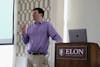 Elon alum Bryan Anderson ‘18 leads a conversation about combating misinformation in LaRose Student Commons on Feb. 10.