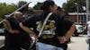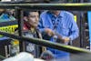 Members of Lowyalty Car Club work on a car. Miembros del Lowyalty Car Club trabajan en un carro.