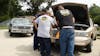 Members of Lowyalty Car club gather at a community event and talk amongst eachother. Los miembros del club Lowyalty Car se reúnen en un evento comunitario y conversan entre ellos.