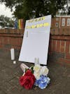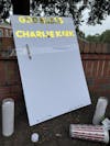 A poster with the words "GOD BLESS CHARLIE KIRK" was placed on Sept. 11 at 9:01am on the corner of West Haggard and North Williamson Avenue.