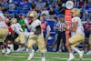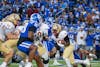Sophomore TJ Thomas Jr. jukes past a Duke defender on Aug. 28.