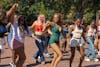 Attendees participating in a line dance during the Welcome B(l)ack Cookout Aug. 30 at Phi Beta Commons.
