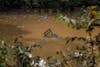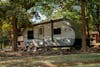 A camper trailer is surrounded by debris and mud after heavy rain on July 7 in Mebane, North Carolina.