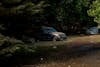 A large piece of Dickey Mill Rd collapses after flooding on July 10 in Mebane. A sedan crashed into the destroyed section, but the occupants likely escaped through a broken back window.