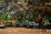 Many cars in a repair shop were flooded and left covered in debris and sediment after heavy rain on July 7 in Mebane.
