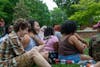 Attendees at the Coolin' on the Commons event on May 3 share a laugh before the next performance. The event showcased step performances from some Divine Nine sororities and fraternities here on Elon's campus.