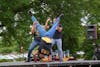 Marques Walker is flipped upside down during a step showcase against other Divine Nine sororities and fraternities. The Alpha Phi Alpha Fraternity Inc. is one of four National Pan-Hellenic Council members.