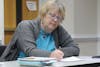 Denise Schweiss writes a letter during the April 8 meeting of the Alamance Letter Writers Society.