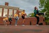 Members of La Unidad Latina fraternity (in yellow) and Omega Phi Beta sorority (in green) perform a stroll together on April 17 at Medallion Plaza. This was part of the first-ever Elon University Multicultural Greek Council meet-and-greet since its establishment this year.