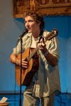 Thistle Ridge member, senior Lucas McKeown, performs his original song, ‘I Saw A Dog Today,’ on April 17 during his first stand-up comedy performance with The Haha in Oak House. McKeown was encouraged by friends to perform in a comedy show and write a song to be included.