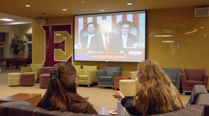 Around 15 students gathered in Moseley Center on Feb. 24 for the State of the Union watch party, hosted by Elon Votes. The broadcast was President Trump’s first State of the Union of his second term and lasted a record 108 minutes, according to AP News. The previous record for the longest presidential address to Congress was 100 minutes and was set by Trump last year.